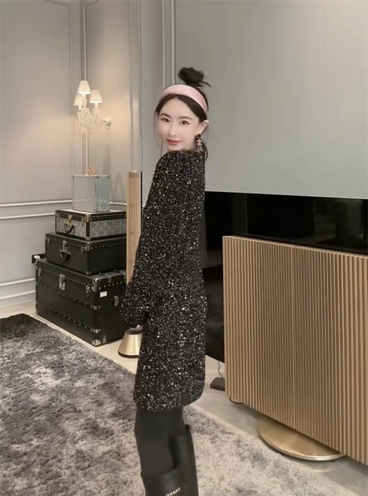 Vestido corto lentejuelas negro