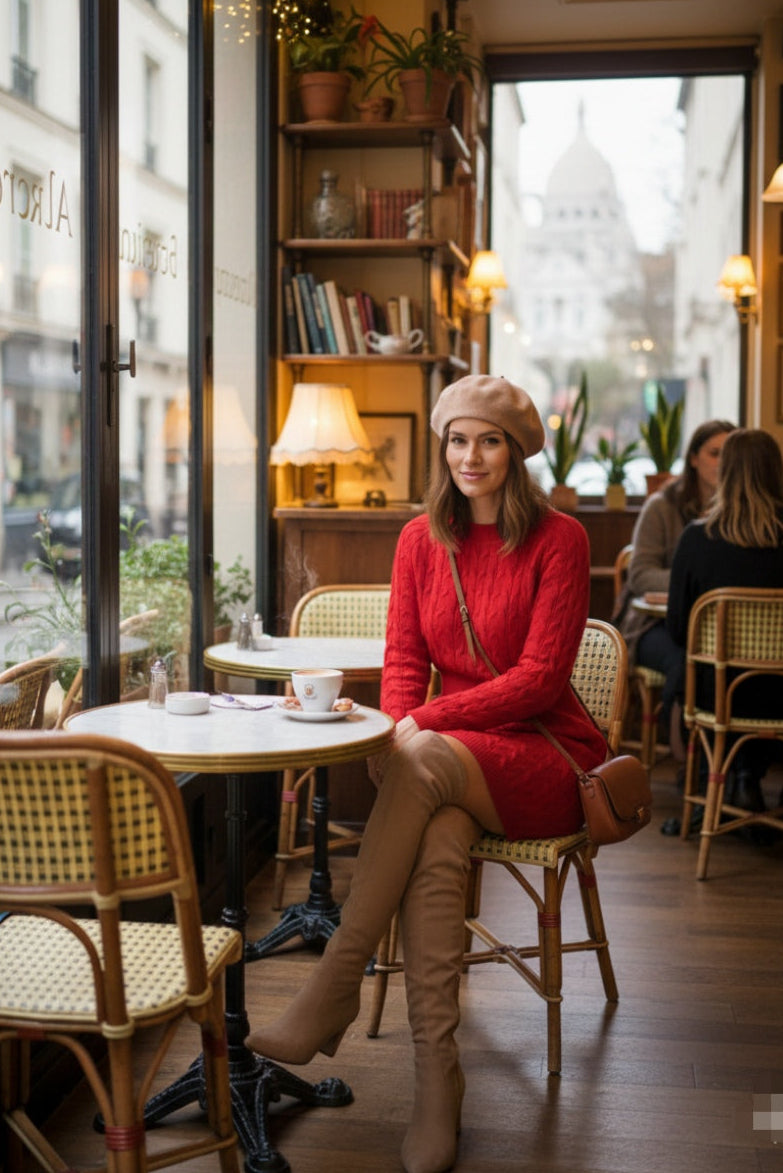 Vestido rojo tejido, manga larga