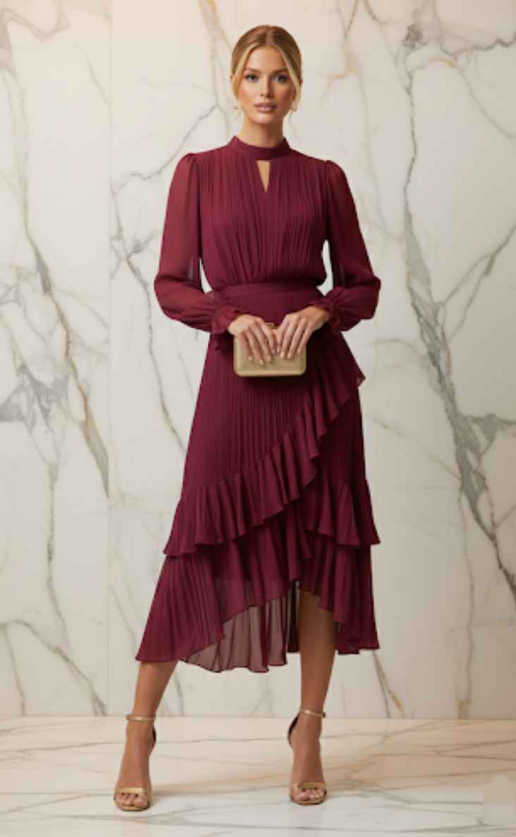 Vestido tinto plisado